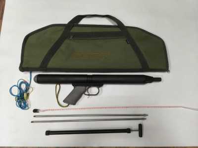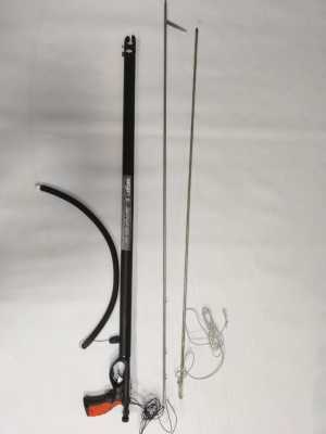 Длина ствола 850 мм. Открытая голова со съемной закрывающей скобой, 1 кольцевая тяга 16 мм, гарпун D6,5 мм, направляющая по всей длине ствола. Ствол имеет диаметр D28,0мм. Таитянский гарпун 6,5мм с 1 флажком с зацепом по типу "акулий хвост". Дополнительно - гарпун 7мм с резьбой М7 под любые типы любых съемных наконечников с классическими прорезами под зацеп; изготовлен из нержавеющей стали. Голова арбалета имеет 2 места для установки 2-х кольцевых тяг толщиной до 19-20мм. Катушка для линя устанавливается в классический ласточкин хвост на стволе у рукоятки и вмещает до 25 метров стандартного линя.